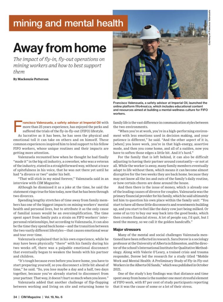 Mining and mental health: Away from home